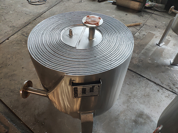 2、在殼體上的接管采用切向結構,局部阻力小,由于螺旋通道的曲率是均勻的,液體在設備內流動(dòng)沒(méi)有大的轉向,總的阻力小,因而可提高設計流速使之具備較高的傳熱能力。